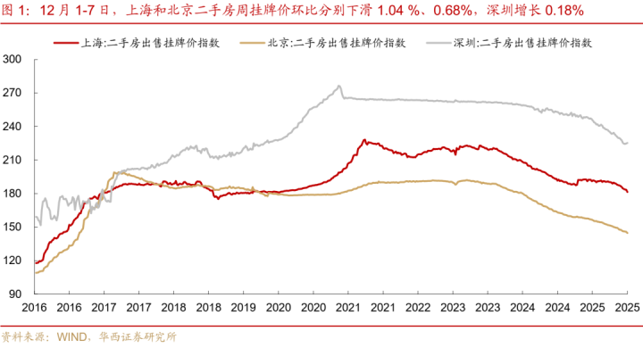 我们主要观察二手房价,因新房价格受推盘区域影响,波动往往较大。本周更新的是Wind披露的二手房出售挂牌价指数(周度)。